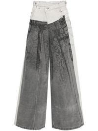 graphic-print jeans Highlights - Black/white - Cotton - Denim - Deconstructed design - All-over graphic print - Front button and zip fastening - Adjustable side straps - Belt loops - Three side patch pockets - Two rear patch pockets - Wide leg Imported Composition Cotton 100% SIZE & FIT Model measurements Height 6 ft 1 in(1.85 m) Bust/Chest 35.82 in(91 cm) Hips 37.79 in(96 cm) Waist 29.13 in(74 cm) Measurement FRONT RISE 14.56 in(37 cm) INSIDE LEG 29.52 in(75 cm) Hem Width 29.13 in(74 cm) WAIST 33.85 in(86 cm) FittingInformation Designed with a wide leg, these jeans offer a loose and roomy fit Sturdy and hard-wearing, this denim piece offers no stretch