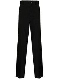 lambs wool straight-leg trousers Highlights - Black - Lambs wool - Belt loops - Front button fastening - Two side slit pockets - Two rear jetted pockets - Straight leg Imported Composition Outer: Lambs Wool 100% Lining: Polyester 52%, Viscose 48% SIZE & FIT Model measurements Height 6 ft 2 in(1.89 m) Bust/Chest 37.4 in(95 cm) Hips 36.61 in(93 cm) Waist 28.34 in(72 cm) FittingInformation Designed for a straight-leg, allowing for an unrestricted and comfortable fit over the leg Made from a midweight non-stretch fabric This piece fits true to size – take your usual size Washing instructions Dry Clean Only