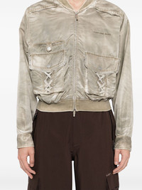 logo-embroidered bomber jacket Highlights - Taupe grey - Front two-way zip fastening - Baseball collar - Buttoned cuffs - Ribbed hem Imported Composition Outer: Polyamide 100% Lining: Polyester 100% SIZE & FIT Model measurements Height 6 ft 2 in(1.87 m) Bust/Chest 33.07 in(84 cm) Hips 35.43 in(90 cm) Waist 26.77 in(68 cm) FittingInformation Designed for a boxy fit, intended for a loose fit throughout The tie fastening gives an adaptable and personalised fit Made from a midweight non-stretch fabric Washing instructions Hand Wash