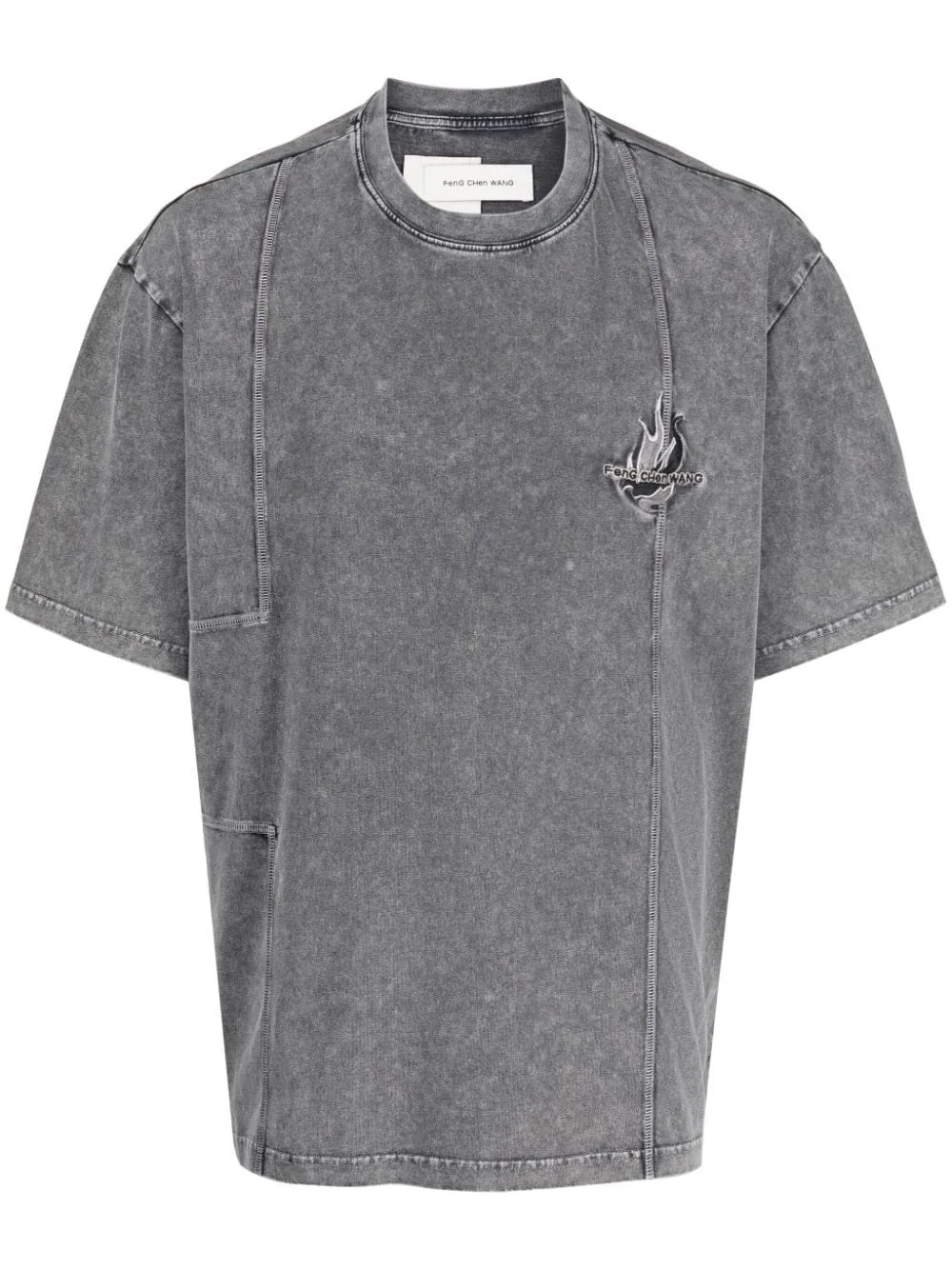 logo-embroidered cotton T-shirt Highlights - Grey - Cotton - Panelled design - Embroidered logo at the chest - Crew neck - Short sleeves - Straight hem Imported Composition Cotton 100% SIZE & FIT Model measurements Height 6 ft 2 in(1.87 m) Bust/Chest 31.49 in(80 cm) Hips 37.79 in(96 cm) Waist 27.95 in(71 cm) FittingInformation Designed for an oversized fit, offering additional room throughout Made from a midweight non-stretch fabric, this piece offers minimal elasticity when worn This piece fits true to size – take your usual size