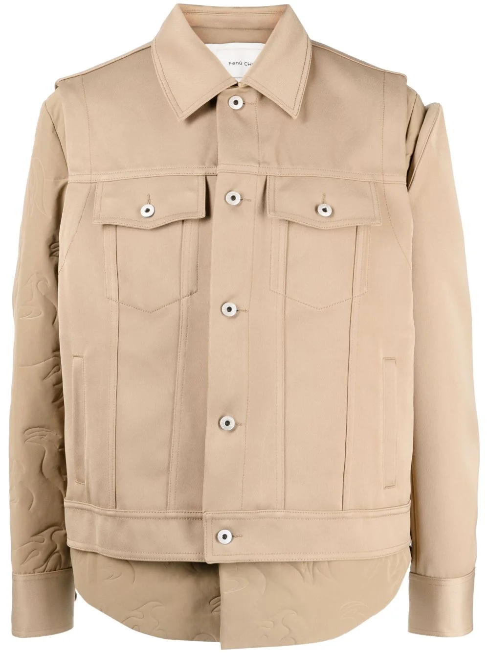 logo-patch long-sleeve jacket Highlights - Khaki - Classic collar - Front button fastening - Two chest flap pockets - Logo patch to the rear - Long detachable sleeves - Buttoned cuffs Imported Composition Body: Polyester 100% Polyester 100% Inner: Polyester 52%, Viscose 48% SIZE & FIT Model measurements Height 6 ft 2 in(1.87 m) Bust/Chest 31.49 in(80 cm) Hips 37.79 in(96 cm) Waist 27.95 in(71 cm) FittingInformation Designed for a boxy fit, intended for a loose fit throughout The adjustable tabs allow for fitted preferences Made from a quilted non-stretch fabric, giving it no natural elasticity This piece fits true to size – take your usual size Washing instructions Dry Clean Only