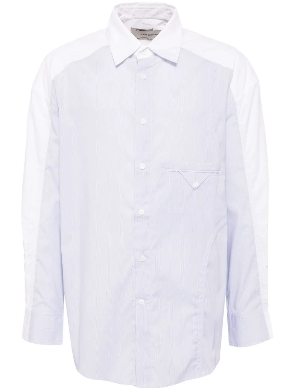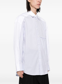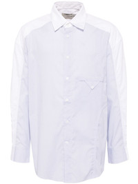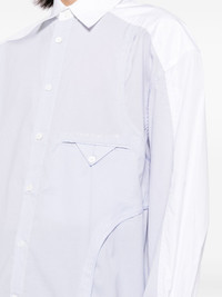 panelled shirt Highlights - White/blue - Cotton blend - Poplin texture - Multi-panel design - Front button fastening - Vertical stripe pattern - Spread collar - Shirt sleeves - Embroidered logo at the chest - Jetted chest pocket - Curved hem - High-low hem Imported Composition Cotton 97%, Spandex/Elastane 3% SIZE & FIT Model measurements Height 6 ft 2 in(1.87 m) Bust/Chest 33.07 in(84 cm) Hips 35.43 in(90 cm) Waist 26.77 in(68 cm) FittingInformation Designed for a relaxed fit, this piece allows for comfort and movement when worn Made from a midweight non-stretch fabric