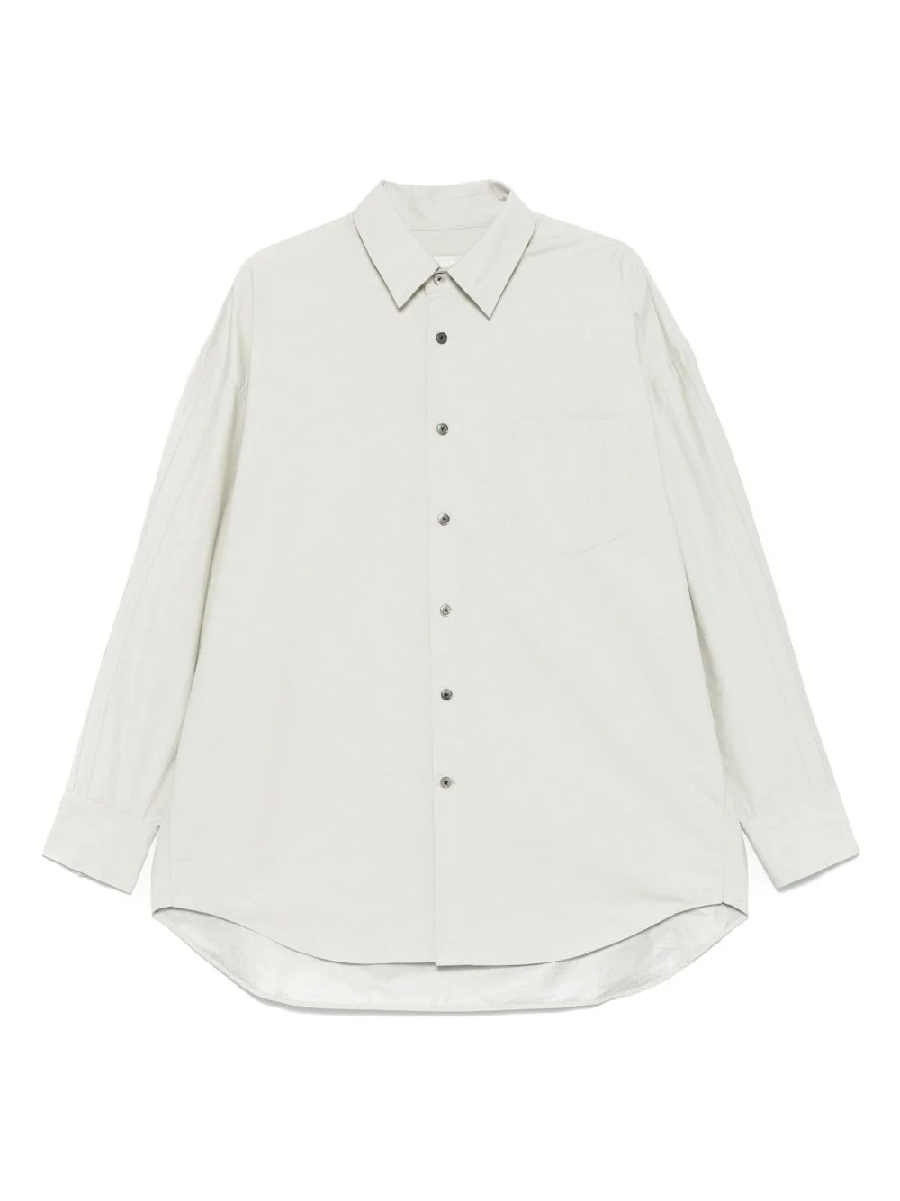 pleated shirt Highlights - Light green - Front button fastening - Chest patch pocket - Long sleeves - Buttoned cuffs Imported Composition Cotton 72%, Polyamide 28% SIZE & FIT Model measurements Height 6 ft 2 in(1.87 m) Bust/Chest 38.97 in(99 cm) Hips 37.99 in(96.5 cm) Waist 29.52 in(75 cm) FittingInformation Designed to be unstructured, offering a loose fit throughout Made from a midweight non-stretch fabric
