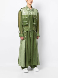 sheer-panelling jacket green coated finish sheer panelling classic collar front zip fastening front press-stud fastening long sleeves two front patch pockets Imported Composition Polyester 100% SIZE & FIT Model measurements Height 6 ft 2 in(1.87 m) Bust/Chest 34.25 in(87 cm) Hips 36.22 in(92 cm) Waist 29.52 in(75 cm) FittingInformation This piece fits true to size. We recommend you get your regular size Cut for a loose fit Made with a lightweight non-stretch fabric Washing instructions Dry Clean Only