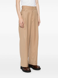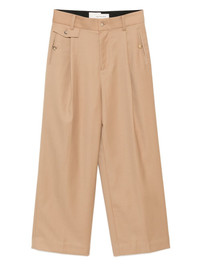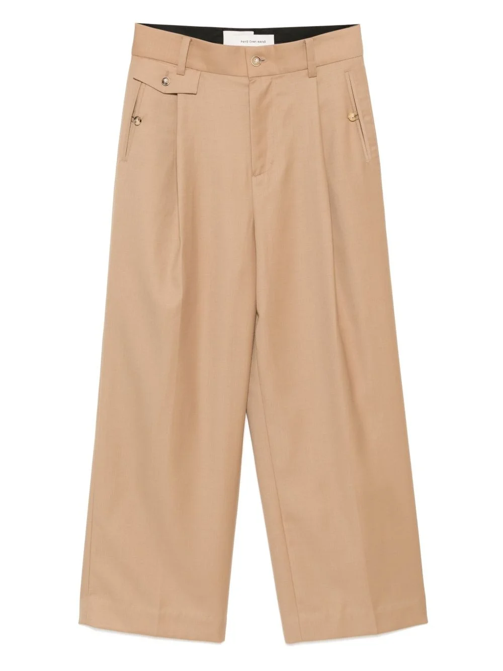 INTRODUCING OUR SLASHED WIDE-LEG TROUSERS, THE PERFECT COMBINATION OF STYLE AND COMFORT. MADE WITH A LIGHT BROWN FABRIC, THESE TROUSERS FEATURE A CONVENIENT FRONT BUTTON AND ZIP FASTENING, AS WELL AS TWO FRONT WELT POCKETS AND A REAR FLAP POCKET. ELEVATE YOUR WARDROBE WITH THESE VERSATILE AND FUNCTIONAL TROUSERS.