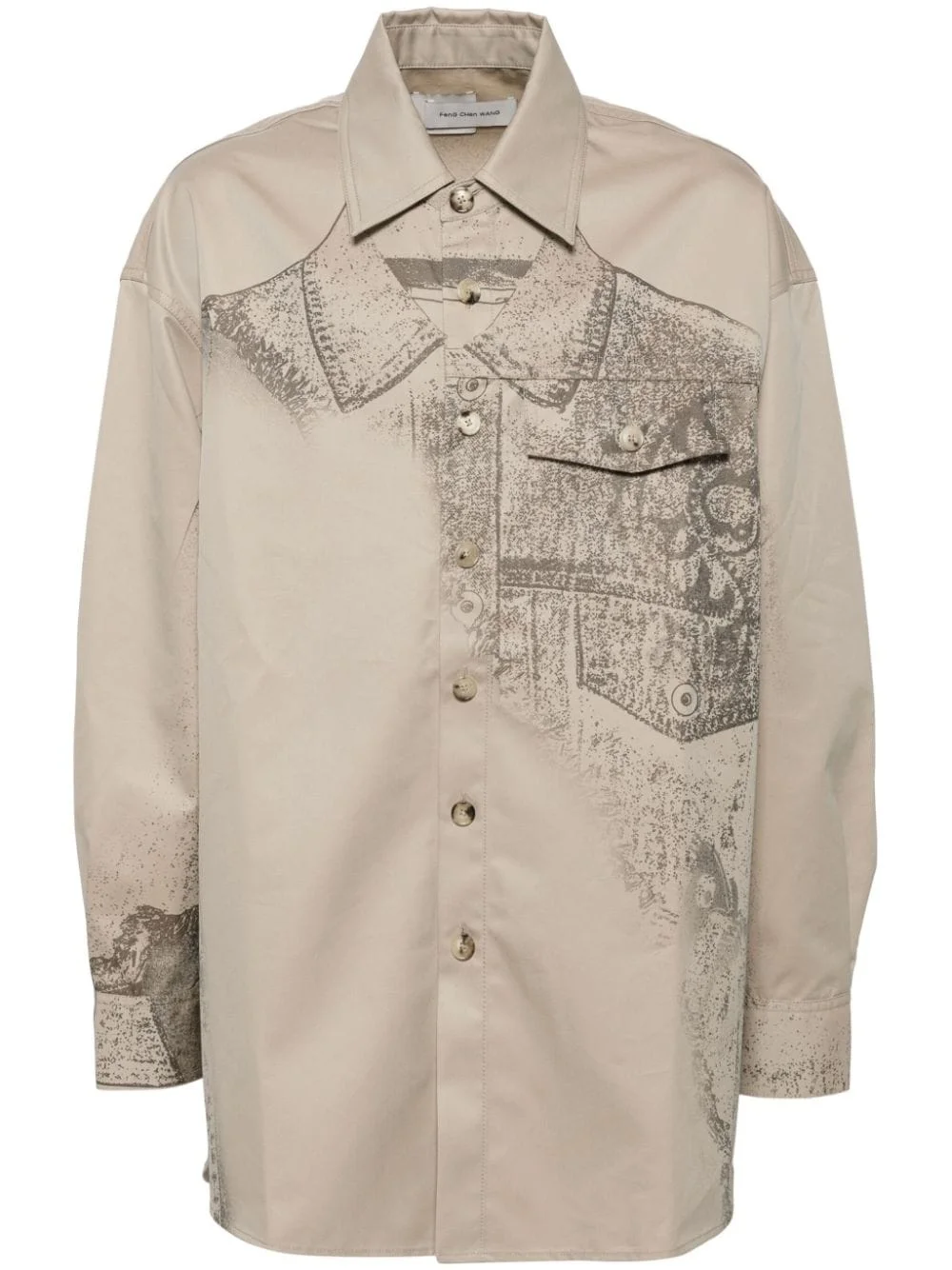 Trompe Loeil shirt Highlights - Khaki - Cotton blend - All-over graphic print - Front button fastening - Spread collar - Shirt sleeves - Chest flap pocket - Side slits - Curved hem - Relaxed fit Imported Composition Cotton 70%, Polyester 30% SIZE & FIT Model measurements Height 6 ft 2 in(1.87 m) Bust/Chest 33.07 in(84 cm) Hips 35.43 in(90 cm) Waist 26.77 in(68 cm) FittingInformation Designed for a relaxed fit, this piece allows for comfort and movement when worn Made from a midweight non-stretch fabric