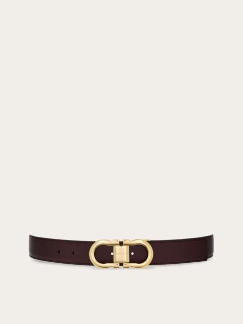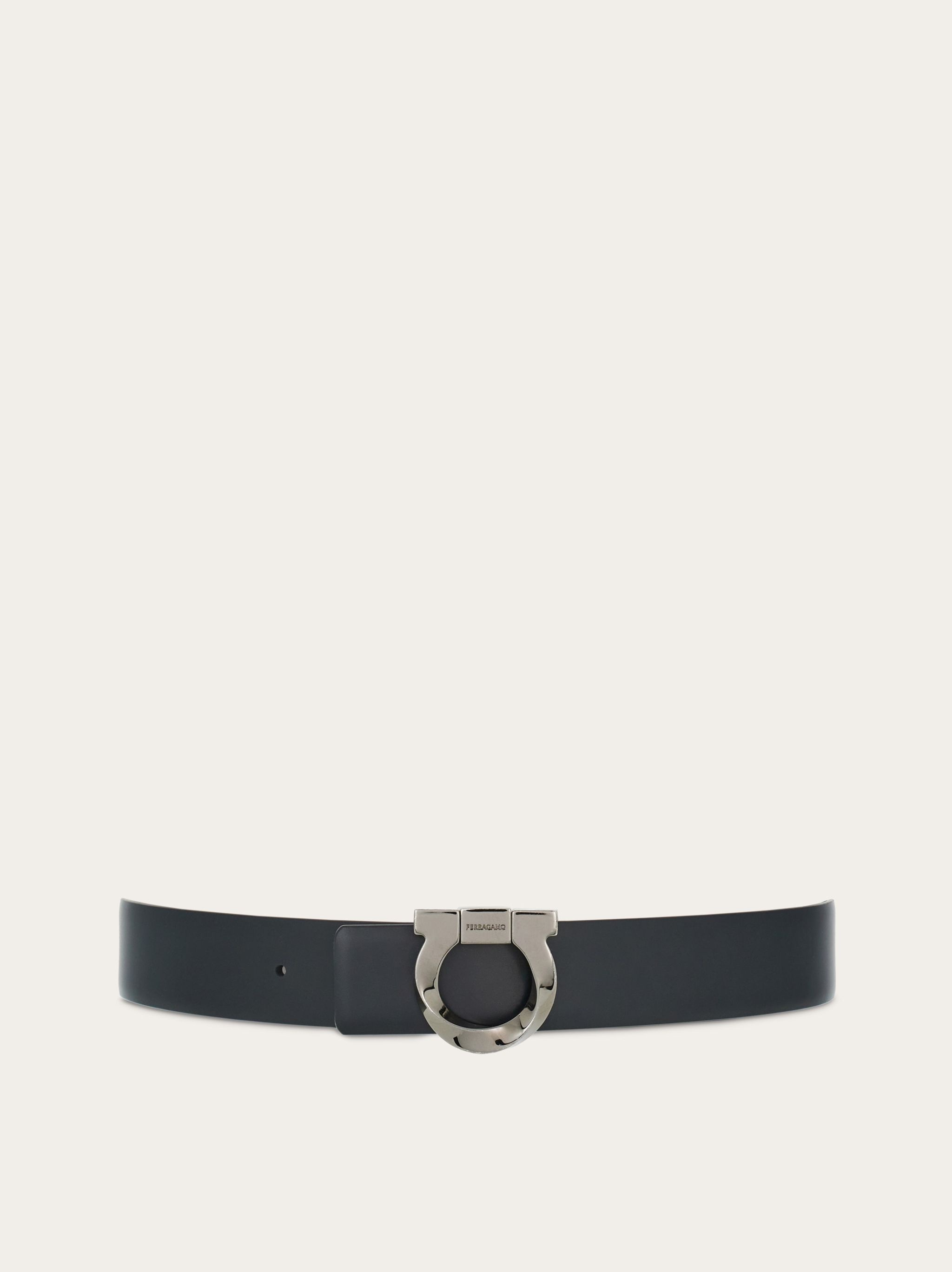 Elegant with a twist: a new smooth calfskin belt with a slightly rounded strap and a minimal design.The reversible, two-tone construction offers surprising versatility. The squared Gancini-profile buckle is adorned by a twist on the bottom, adding shine and an original edge. Logo stamped on the tag. - height 35.0 CM / 13.7 IN - Composition: calfskin - Product code: 670311 770934 - Made in ITALY