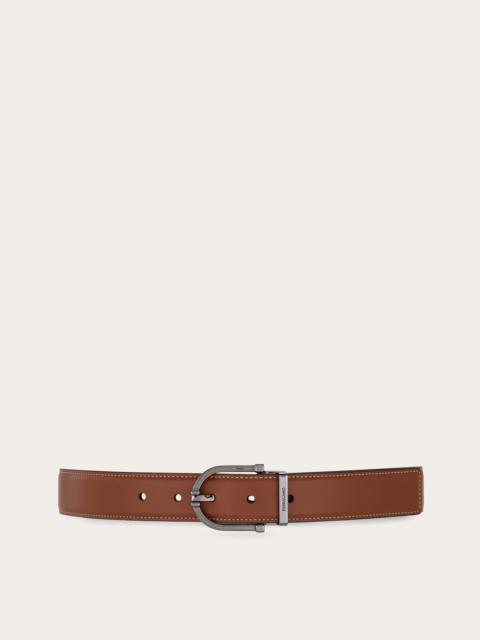 A refined loom-woven technique gives this belt its distinctive leather basketweave effect. The geometric ruthenium-finish buckle is accented with delicate metallic Gancini details on the loop for a signature touch. The adjustable length allows for a more personalized fit and style. We invite you to check our size guide for more information. - height 1.3 IN - Composition: calfskin - Made in ITALY - Product code: 670575 786458
