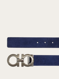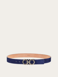 The casual elegance of suede, paired with the elegant touch of the palladium-finish Gancini buckle: a new adjustable-length design for this Ferragamo belt. The squared-profiled strap is finished off by topstitching for a more relaxed vibe. The adjustable length allows for a more personalized fit and style. We invite you to check our size guide for more information. Ferragamo. - height 1.3 IN - Composition: calf suede - Made in ITALY - Product code: 675544 771982