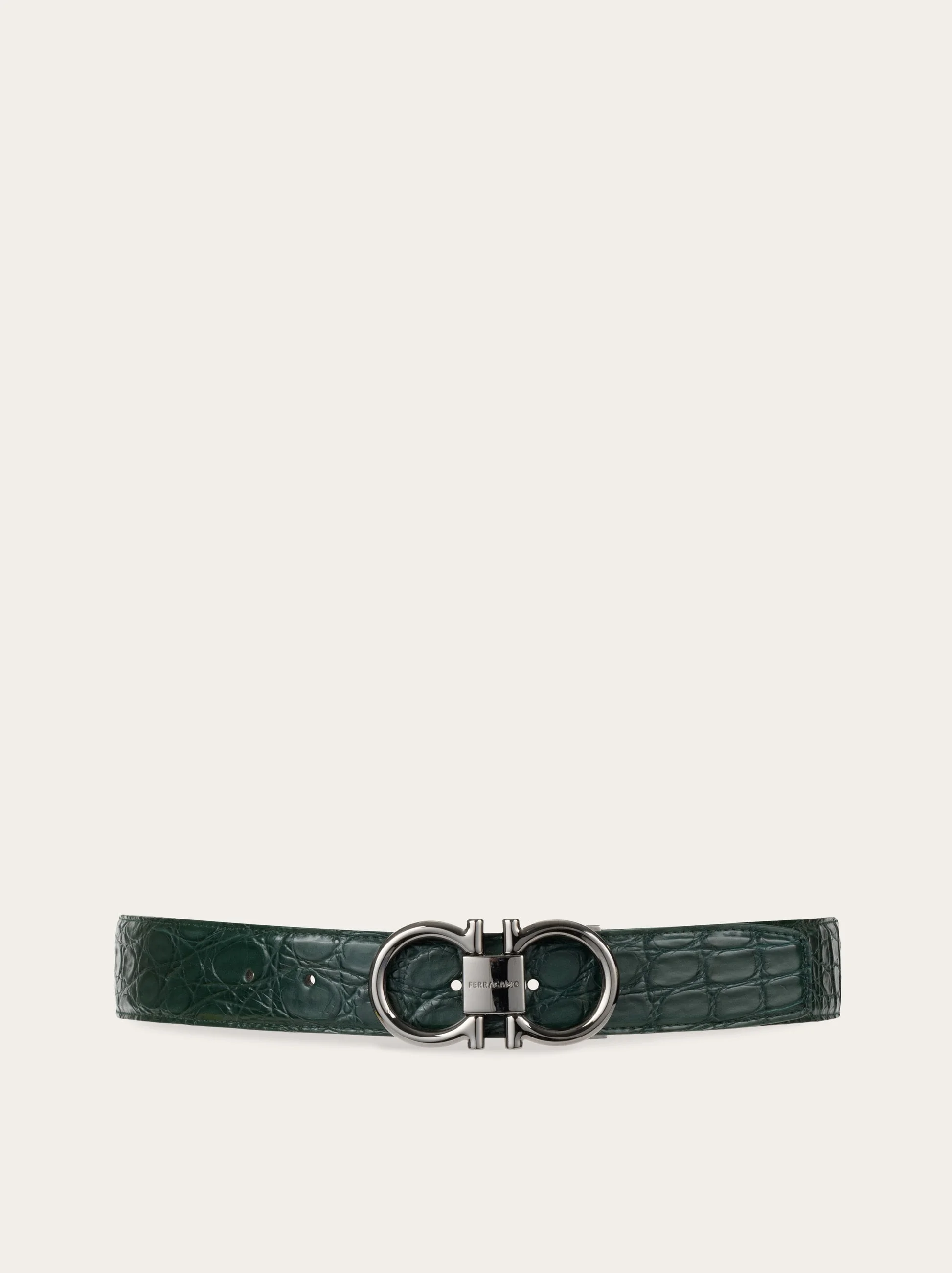 This elegant belt is chic and timeless with a contemporary flair. Made of precious crocodile leather with a shiny finish, it has an adjustable strap with a Gancini buckle with rounded edges in a cool, palladium finish. The central plate has an engraved signature to confirm its place among the icons. The adjustable length allows for a more personalized fit and style. We invite you to check our size guide for more information. - height 1.3 IN - Composition: alligator - Made in ITALY - Product code: 679952 787192