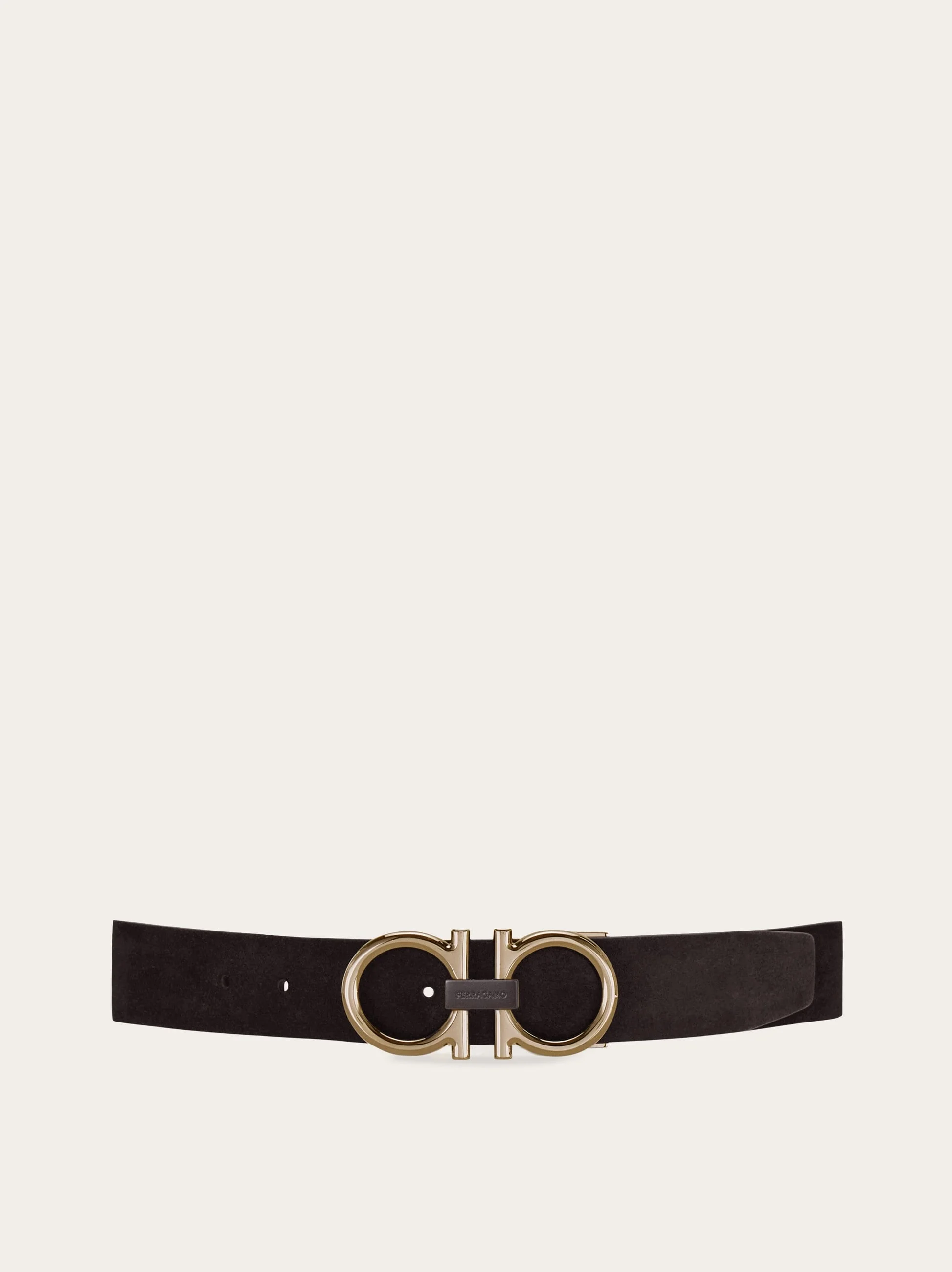 Exuding smart-casual sophistication, this belt is beautifully crafted from supple calf suede. Notice the softly rounded Gancini buckle in a golden finish that brings a modern twist to the signature silhouette. The adjustable length allows for a more personalized fit and style. We invite you to check our size guide for more information. - height 1.3 IN - Composition: calfskin suede - Made in ITALY - Product code: 679955 782993