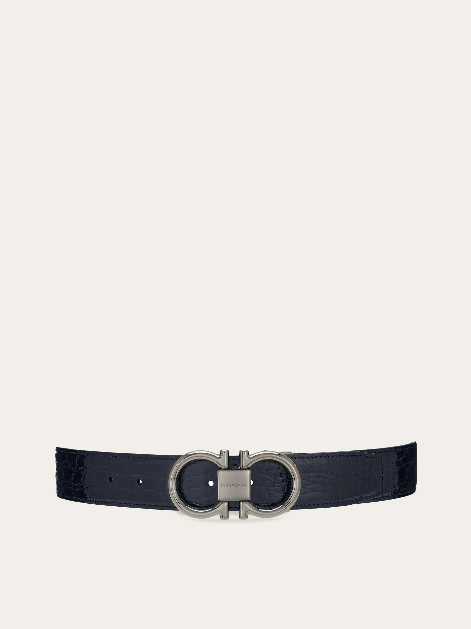 Chic and timeless, this new Ferragamo belt is made of precious crocodile leather with rich, luxurious glow. The adjustable strap has a Gancini buckle with rounded edges in a cool, palladium finish, with central signature. The length is adjustable. Please see the size guide for further details. - height 1.3 IN - Composition: crocodile leather - Made in ITALY - Product code: 679952 781602