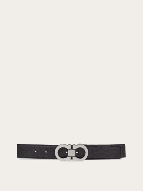 Understated belt, featuring an alligator strap and a Gancini-silhouette buckle. This adjustable-length model offers a custom fit and style. Please check our size guide for more information. - height 1.3 IN - Composition: alligator - Made in ITALY - Product code: 679558 776986