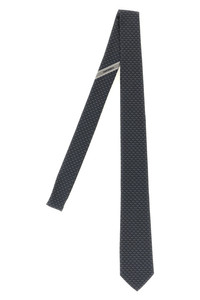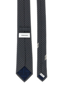 cod. 789252FBLUGRIGIO 'Biella' silk tie with jacquard 'Gancini'. Color: Black Size & Fit: Blade 7 cm Composition: 100% silk Made in: Italy