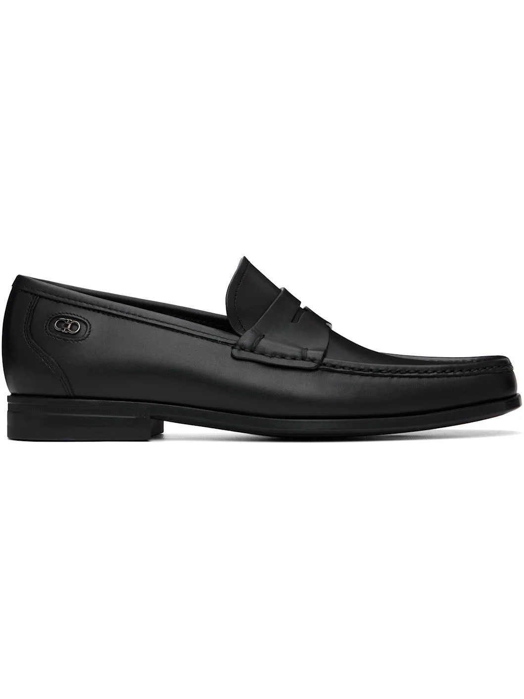 Buffed calfskin loafers. · Square moc toe · Strap with cutout at vamp · Logo hardware at outer side · Suede lining · Rubber sole Supplier color: Nero Upper: calfskin. Sole: rubber. Made in Italy 252270M231002