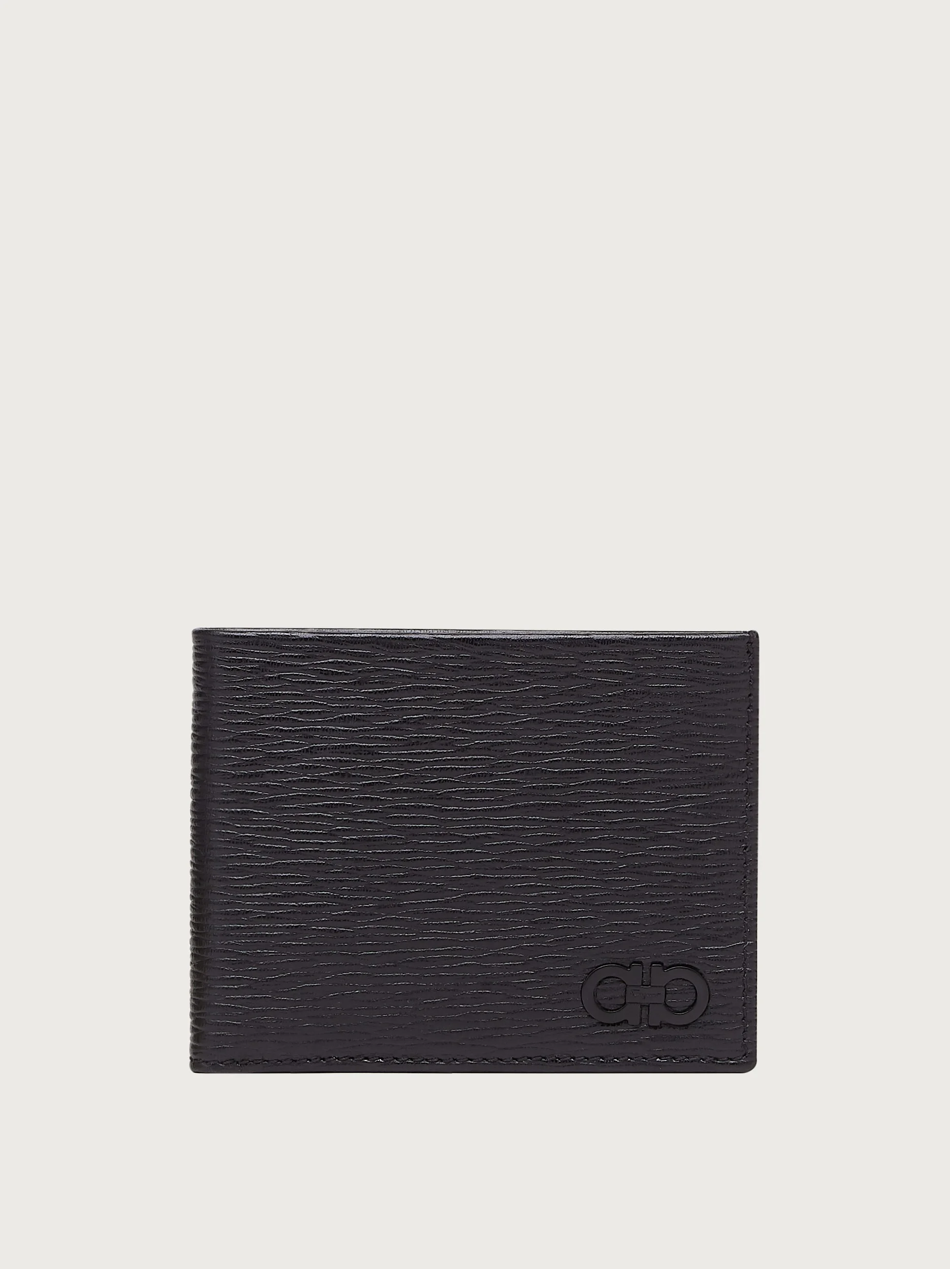 Slim and functional, this wallet is made from supple hammered leather and adorned with the iconic Gancini logo in metal. The contrasting interior offers multiple credit card slots, flat pockets for your IDs and a bill compartment. Collection FW 20 - height 3.3 IN length 4.3 IN - Composition: hammered calfskin - Made in ITALY - Product code: 66A064 733314