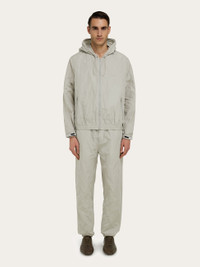 Metallic threads are woven into the fibers of this technical taffeta blouson to maintain the carefully structured crinkle. The silhouette is regular, with a drawstring hood, heat taped full zip fastening, and Velcro straps on the cuffs. - Composition: 85% polyester, 15% metallic thread - Made in ITALY - Product code: 144475 782754