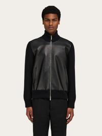 Bomber jacket in leather and wool