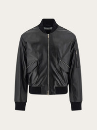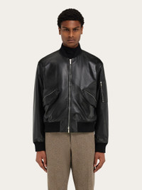 A sophisticated take on sports-inspired outerwear, this bomber is made from soft nappa leather, as light as fabric and super comfortable. Luxuriously crafted, it nods to casual silhouettes with details such as ribbed trims on the collar and hem, the two way zip closure, and diagonal pockets along the sides. The gusseted pocket with diagonal zip on the left sleeve adds an exclusive touch. The garment is customized with an embossed Gancini logo on the back of the collar. - Composition: nappa - Made in ITALY - Product code: 144362 781695