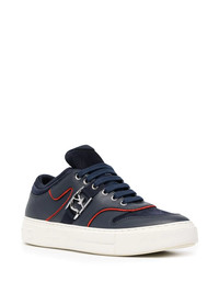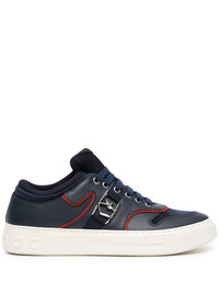 Borg logo low-top sneakers Filled with iconic symbols, Salvatore Ferragamos’s stylistic universe embodies typical Italian elegance. These low-top sneakers have been accented with embossed Gancinis to the sole and a signature SF plaque to the sides - two of the brand’s most recognisable motifs. Made in Italy Composition Sole: Cotton 100% Lining: Rubber 100% Outer: Calf Leather 100% SIZE & FIT Measurement HEEL 1.37 in(3.5 cm)
