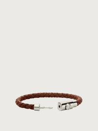 This braided calfskin bracelet comes in the collection’s colors and flaunts understated shapes and an urban-chic line. The palladium-finish pin and button fastening adds a shiny, cool edge to the accessory. Size: 19 cm. - Composition: calfskin and brass - Size 19 - Made in ITALY - Product code: 773540 675939
