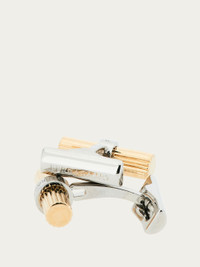 Understated with a graphic feel, these new cufflinks are crafted from a knurled cylindrical element with a light gold finish and the engraved logo on the shaft. Inspired by the details of the hardware in the ready-to-wear and bag collections, they are the perfect complement to more formal looks. - Composition: brass - Made in ITALY - Product code: 770336 771071
