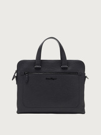 The super soft tumbled calf leather of this business bag is enriched with an opaque rubbery finish for a sporty-chic feel. Practical details enrich this essential accessory with a contemporary look such as a double pocket with zip and a central pocket with a magnetic closure. The interior is perfectly organized with padded spaces for electronics and personal effects. Adjustable shoulder strap for hands free styling. - height 11.0 IN length 14.5 IN width 1.3 IN - Composition: rubberized calfskin - Made in ITALY - Product code: 240133 740811