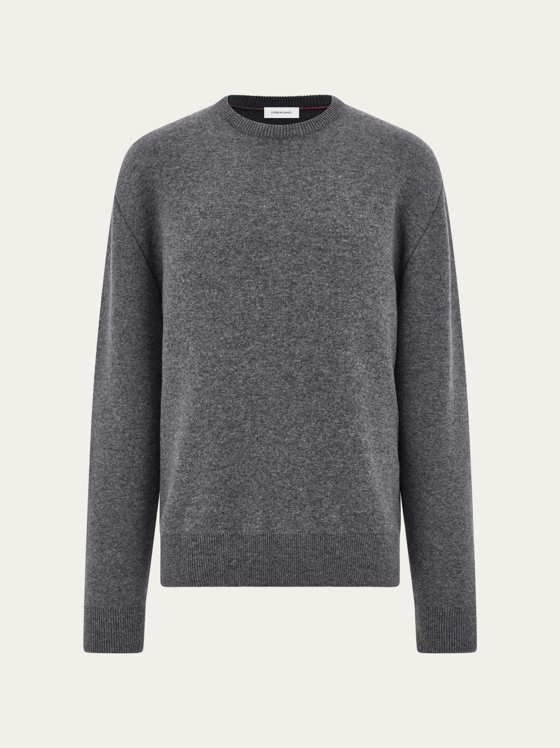 Clean cut crewneck sweater made of a soft and luxurious blend of pure wool and cashmere. The two tone effect between the back and front adds a graphic twist to the poetic duality that characterizes this season’s collection. An embroidered signature completes the design. - Composition: 66% pure virgin wool, 29% cashmere, 4% polyamide, 1% elastane - Made in ITALY - Product code: 145132 788004
