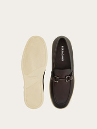 A new calfskin version for these casual loafers, featuring a slightly square toe and topstitching with leather piping on the apron. This style is decorated by a horsebit with titanium-finish Gancini accents on the sides, adding a metropolitan edge, while the white rubber sole brings the design of boat shoes to mind. - Composition: calfskin - Made in ITALY - Product code: 028298 774494