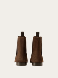 This Chelsea boot is defined by an elegant almond toe and a leather panel partially covering the elastic side inserts – look closely to spot the perforated Gancini detail. Thin leather sole. - Composition: suede calfskin - Made in ITALY - Product code: 029963 784409