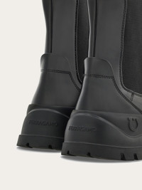 A modern Chelsea boot made of smooth polished calfskin, set on an ultra-lightweight rubber sole that wraps around the edges, adding a bold touch to the design. Classic elastic panels and reinforced heel complete this bootie, which is customized with an embossed Gancini motif on the edge and Ferragamo signature on the back. - Composition: calfskin - Made in ITALY - Product code: 029667 778520