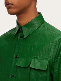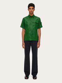Short-sleeved utility style shirt made of coated linen with three dimensional pockets on the chest and left sleeve. Along the placket, horn buttons echo a luxurious feel, confirmed by the custom metal tab at the back of the neck. - Composition: 100% linen - Made in ITALY - Product code: 143897 772910