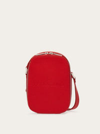 Soft matte-finish leather and understated geometric lines: the Ferragamo crossbody bag merges fashionable details with the most exquisite leather-working craftsmanship. The rounded lines are emphasized by the metal zip, while the embossed logo on the front adds a distinctive edge. Adjustable shoulder strap for a modular carry. - height 19.0 CM / 7.4 IN length 14.0 CM / 5.5 IN width 5.0 CM / 1.9 IN - Composition: calfskin - Product code: 241469 769602 - Made in ITALY