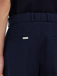 Designed to combine comfort and style, these solid-color trousers in organic cotton canvas have a brushed, slightly velvety texture. The classic construction includes side pockets inserted along the seams, a horizontal coin pocket, and welt pockets on the back. A pressed pleat runs the length of the leg, while the waistband fastens with a hidden hook. The small metal tag on the back is a signature detail. - Composition: 100% organic cotton - Made in ITALY - Product code: 144321 780691