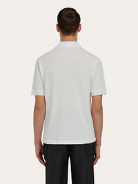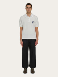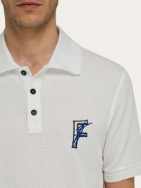 More than just a polo shirt when signed by Ferragamo. This gentlemen’s classic features an embroidered capital F on the chest with overlapping signature. Textbook details include a three button ribbed collar and rib trims on the sleeve. Made of cotton, it is ideal for leisure looks, or to add a relaxed feel to workwear. - Composition: 100% cotton - Made in ITALY - Product code: 122418 783745
