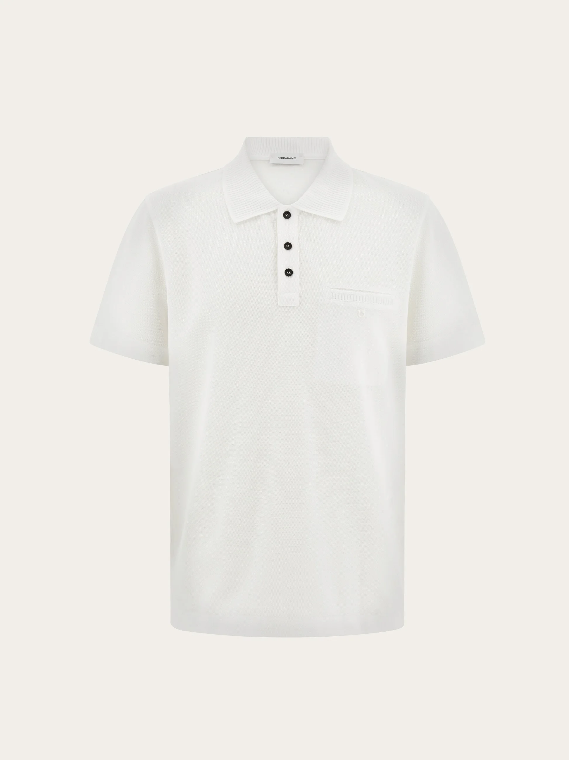 Subtle tweaks to a classic silhouette give it a current edge. In walks the beloved polo shirt, cut from prestigious piquet cotton with a slit pocket on the chest. Ribbed trims complete the design with tonal embroidered Gancini on the chest pocket. - Composition: 100% cotton - Made in ITALY - Product code: 144938 790947