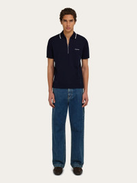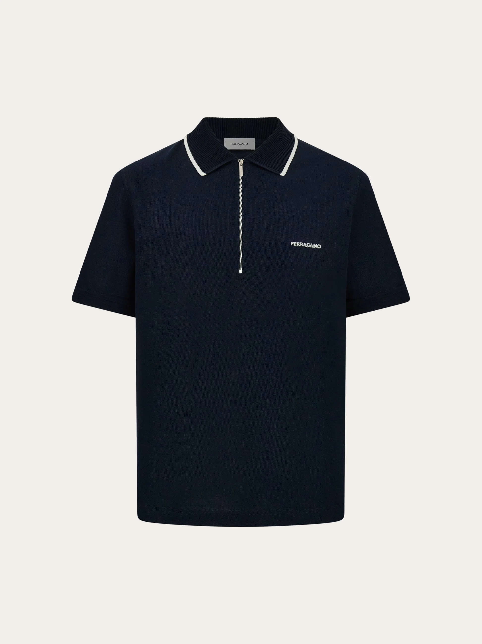 A personal and cool take on the pure cotton polo shirt with contrasting ribbed collar trim and exposed metal zipper. Contrasting geometric signature embroidery at the chest for a refined touch. - Composition: 100% cotton - Made in ITALY - Product code: 144797 784281