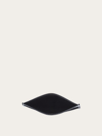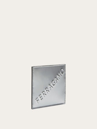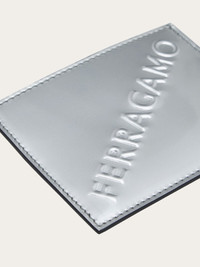 Compact credit card holder, made of laminated calfskin in a cool silver hue with a high shine finish. The slots are on the back, and a 3D bold signature is place diagonally across the front. Central pocket for receipts and banknotes. - Composition: laminated calfskin - Made In ITALY