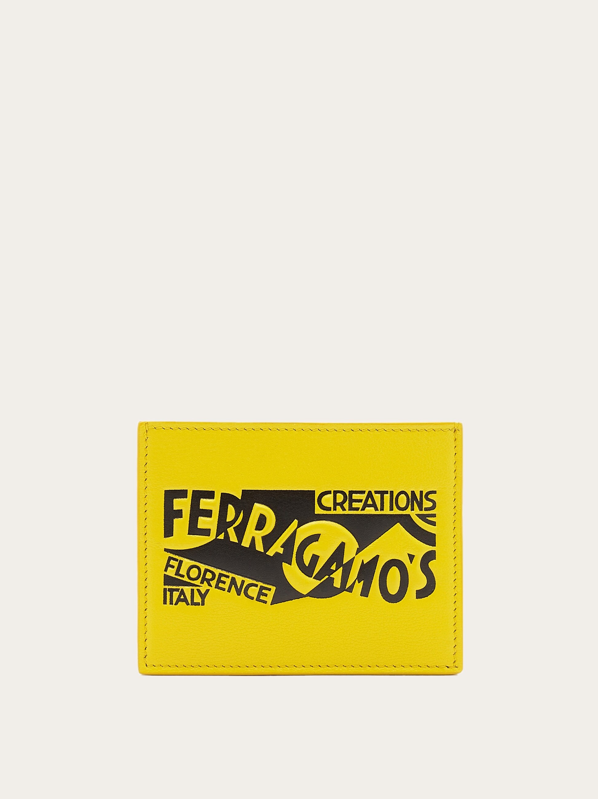 The Venna logo lights up this cool new credit card holder by Ferragamo. Created by artist Lucio Venna in the 1930's this bold logo has a futuristic feel, and is printed on the calfskin leather, with 3 card slots on the back side. - height 3.1 IN length 4.1 IN - Composition: calfskin - Made in ITALY - Product code: 661464 776202