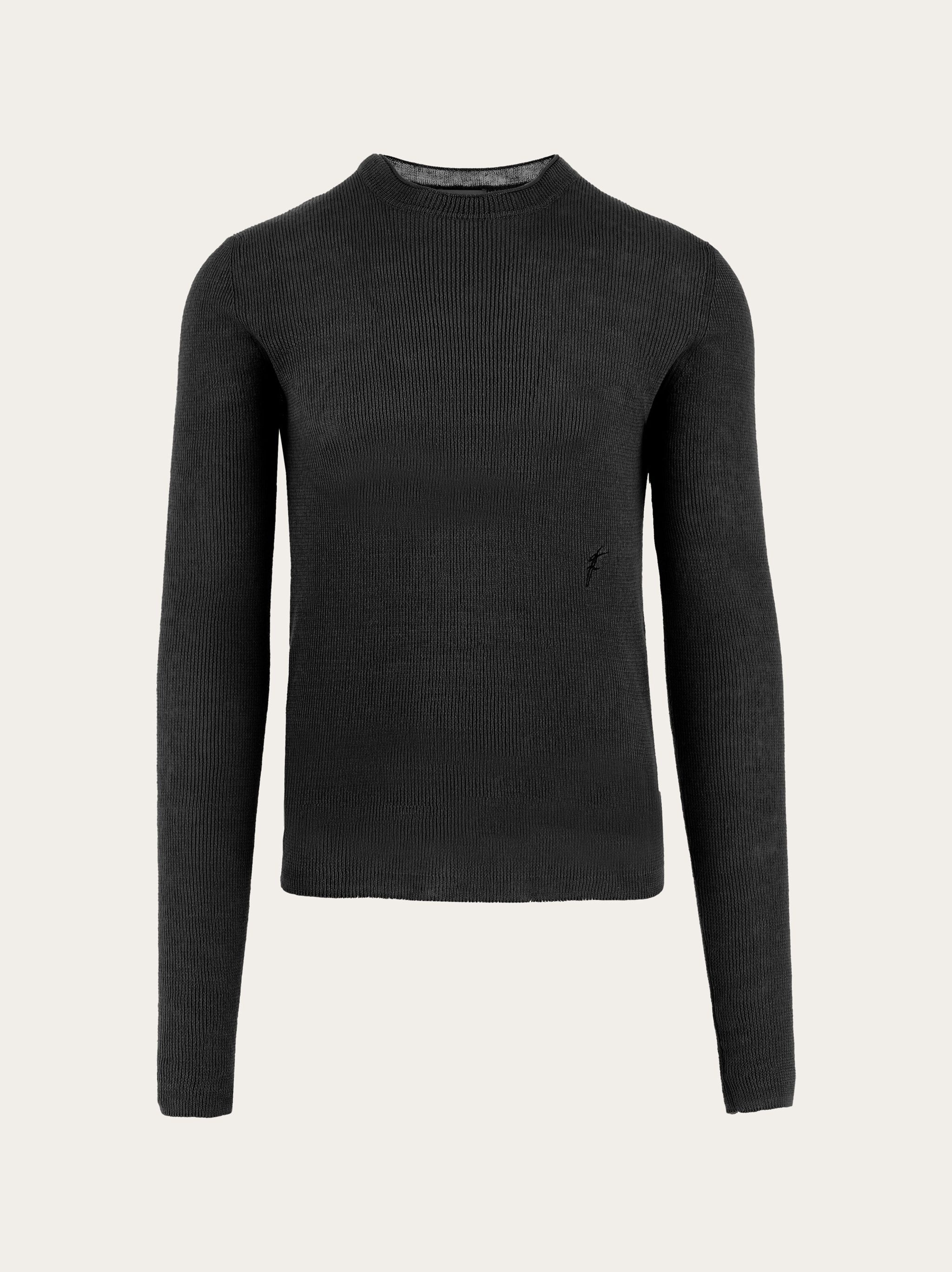 A summer essential in a deluxe key: crew neck sweater made of pure interlock linen. The compact fisherman’s rib knit highlights the quality and texture of the yarn and subtle details such as the fine ribbing and rolled edge on the collar, dropped stitches on the armholes and the straight cut hem. An embroidered F features on the bust. - Composition: 100% linen - Product code: 122359 772667 - Made in ITALY