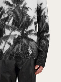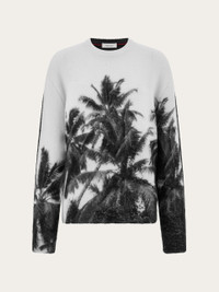 With a drop shoulder and oversized fit, this fluffy mohair jumper is decorated with the Trinidad print. Inspired by the joy that comes with receiving a postcard from a sunny climate on a cold winter’s day, this particular communique is signed by the House of Ferragamo. Small custom metal tab at the back of the neck. - Composition: 67% mohair, 28% polyamide, 5% pure virgin wool - Made in ITALY - Product code: 145191 788727