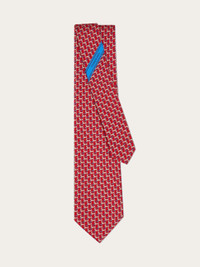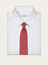 A series of bouncy dachshunds trots happily across this pure silk tie. The print features the iconic Gancini as a toy in the geometric pattern. Available in several color combinations. - Composition: 100% silk - Made in ITALY - Product code: 351290 785418
