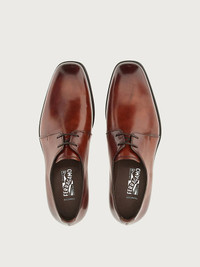 The classic Derby shoe with Italian flair and know how, perfect for formal occasions. A swanky lace up with clean lines, made of royal wax calf leather for a prestigious, high end look. Two simple eyelets punctuate the upper with its elongated toe with a slightly squared profile. The leather sole has a custom design along the profile, with visible grooving. The shoe is crafted according to the world renowned ‘Tramezza’ construction method, which is synonymous with craftsmanship and excellence. The process involves 160 distinct phases and over 6 hours of manual work by an expert shoemaker, to combine strength and durability with flexibility and comfort. - Composition: Calf leather - Made In ITALY
