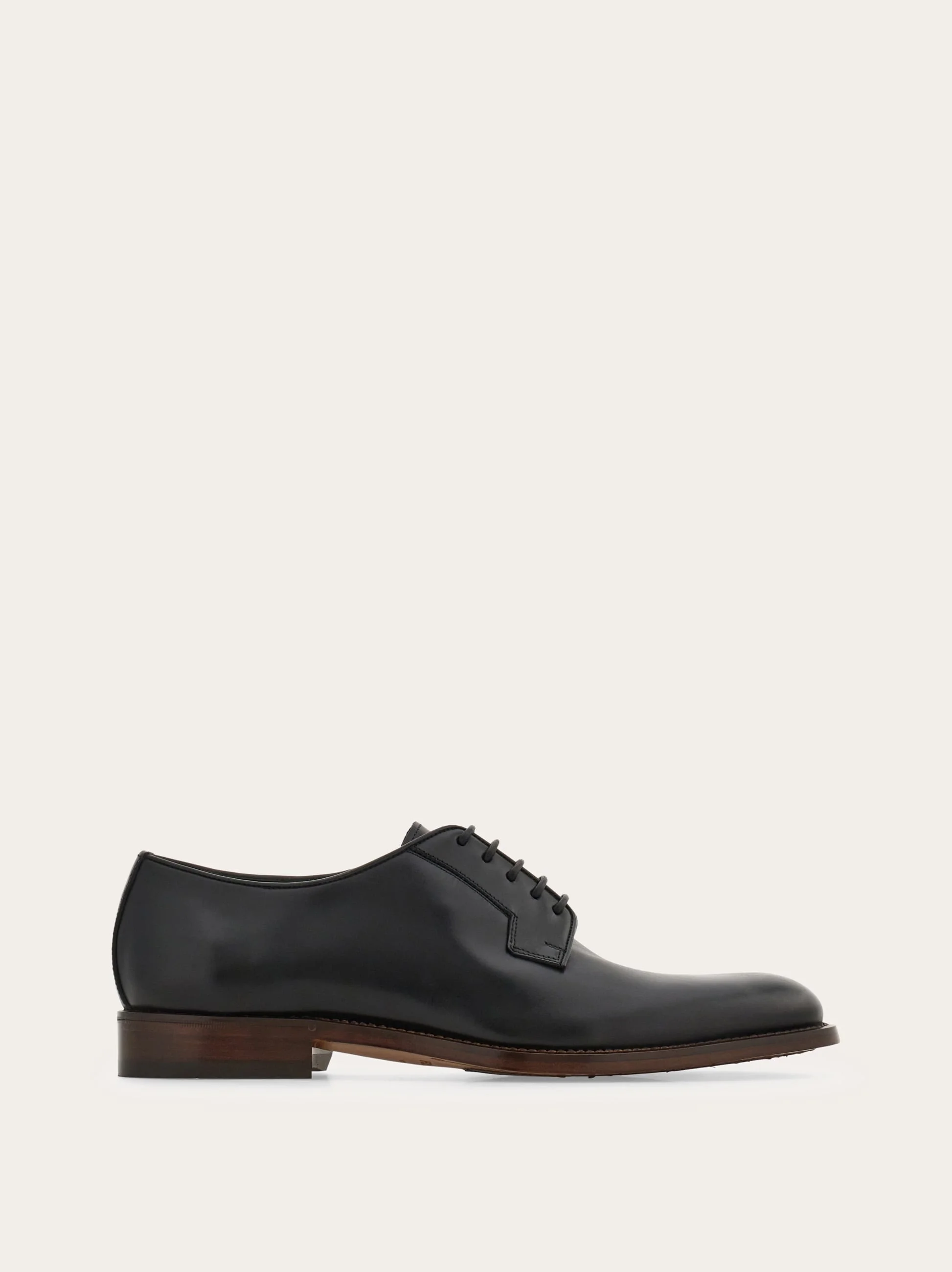 This new Derby shoe is designed with formal occasions in mind. It's crafted from soft calf leather with a minimalist rounded profile and set on a rubber-reinforced leather sole starring the Ferragamo Monogram. Never out of style and built to last, the Blake construction is characterized by an internal seam that fixes the upper to the sole for enhanced durability. - Composition: calfskin - Made in ITALY - Product code: 02A062 784440
