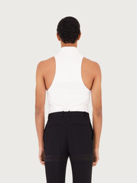 Double breasted, viscose stretch waistcoat with an enticingly contemporary feel. The slim fit, and tapered cut arms echo a new kind of formal. Made using yarns blended with 94% responsibly-sourced viscose and logo label made from 100% post-consumer recycled polyester. - Composition: 94% viscose, 6% elastane - Made In ITALY