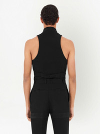 double-breasted waistcoat from Ferragamo featuring black, V-neck, concealed front button fastening, chest welt pocket, two front welt pockets and sleeveless. Size & Fit Model Measurements: Bust: 0cm Height: 0cm Hips: 0cm Waist: 0cm Fabric and Care Designer Style ID: 761188 Designer Colour: Black Composition: Outer: Spandex/elastane 6%, Rayon 94%; Lining: Cotton 100%Made in Italy