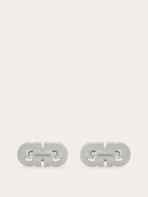 Back to back Gancini bits form the outline of these cool new cufflinks by Ferragamo. The brushed finish implies an industrial feel, with embossed logo on the central link. - Composition: 100% brass - Made in ITALY - Product code: 770385 784855