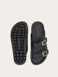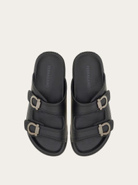 Great summer must-haves, these double-strap sandals feature the burnished Gancini accent on the sides and the embossed brand name on the central detail. The insole is enveloping and anatomical, to offer maximum comfort. Chunky rubber sole with a custom design. - Composition: calfskin - Made in ITALY - Product code: 027970 774491