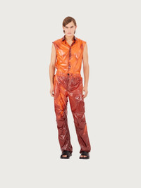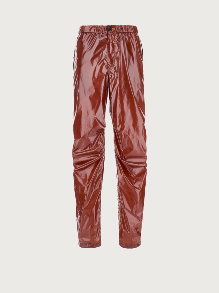 Drawstring cargo pants made of pure cotton faille with a textured rib. Details include side flap pockets with horn buttons, back slit pockets. The pleat at the knee adds texture to the wide leg. Active style, relaxed fit. - Composition: 74% polyamide, 26% cotton - Made In ITALY
