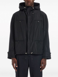 drawstring-hem hooded jacket Highlights - Black - Drawstring fastening waist - Buttoned-cuff sleeves - Drawstring hood - Concealed front fastening - Long sleeves - Two chest welt pockets - Two front welt pockets Made in Italy Composition Outer: Polyester 100%